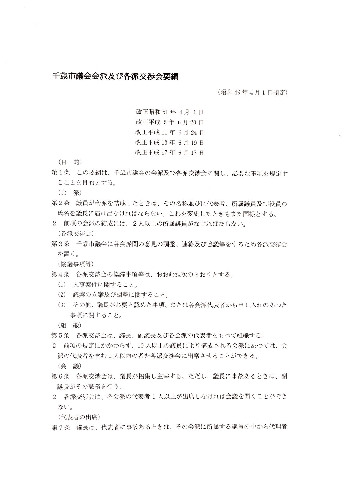 各派交渉会は、「千歳市議会会派及び各派交渉要綱」と言う取り決めに従って運営されています。この中の第8条において、会派に所属しない議員はオブザーバー扱いとなっており、議長の許可がなければ発言できないばかりか、各派交渉会で決定したことについては、尊重しなければならない義務条件まで課されています。